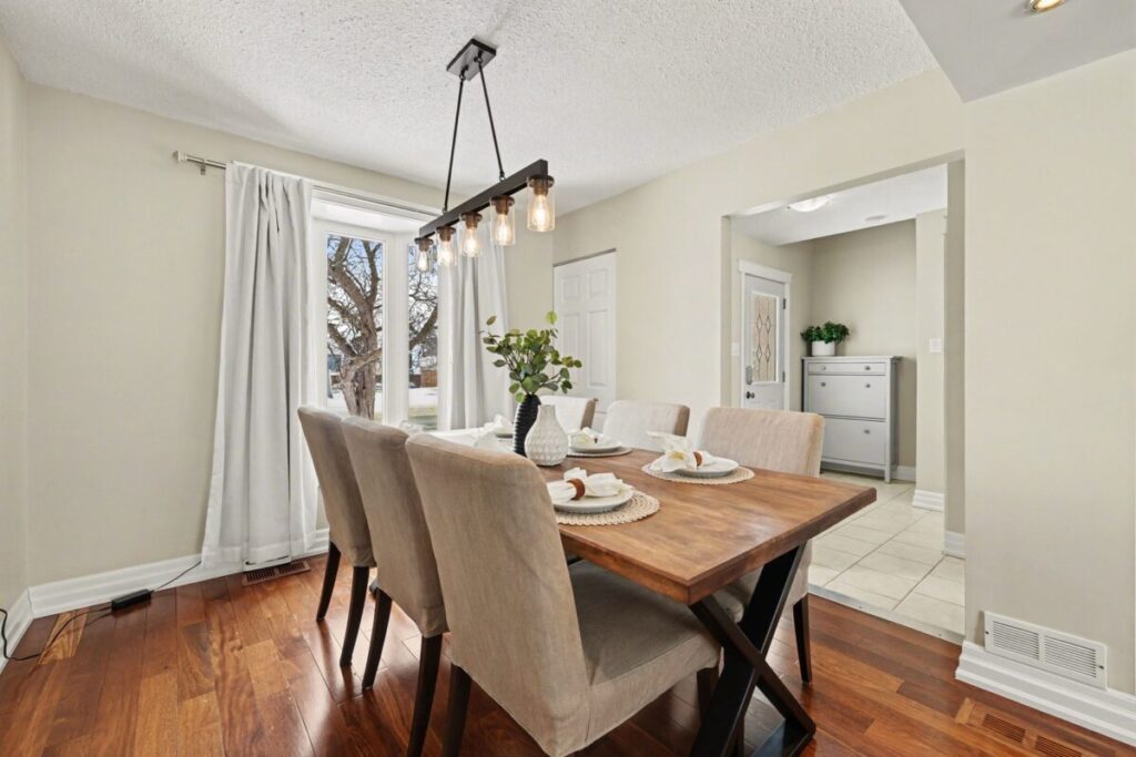 Welcome to 28 Glamorgan – a beautifully maintained semi-detached home set on a large corner lot surrounded by mature trees and offering an extra-long driveway with plenty of parking. Step inside to a bright and inviting space featuring hardwood floors and oversized windows that fill the home with natural light. The main level offers a spacious dining room overlooking the living area, with the option to easily convert the layout back to its original living room configuration if desired. The living room flows seamlessly into the kitchen, complete with a custom breakfast bar that creates the perfect space for everyday living and entertaining. Upstairs, you will find 3 bright and sunny bedrooms along with a well appointed main bathroom, ideal for families or those needing flexible space.The finished basement adds even more living space, featuring a 2nd bathroom, storage, and room for a rec room area, home gym, or office. Outside, enjoy a fully fenced backyard complete with a deck, gazebo, shed, and a charming treehouse! A perfect setup for both relaxing and entertaining. Located in a fantastic family friendly neighbourhood, just steps to parks, schools, and everyday amenities, this home checks all the boxes. Bright, clean, and move-in ready this is one you won’t want to miss! Roof 2017 with 30 year shingle, Windows 2022, furnace 2014, AC 2019, Eavestrough 2025, New Appliances 2024, Driveway extension(3cars) 2018, Hot water tank 2024(non rental).