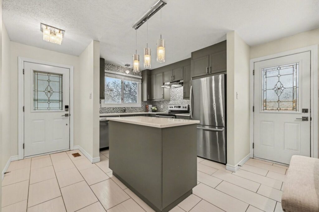 Welcome to 53 Morton Street, a charming semi-detached bungalow set on a quiet, family-friendly street and positioned on an expansive pie-shaped lot. The home welcomes you with a beautiful red brick front, offering timeless curb appeal and a warm first impression. Inside, the stunning updated kitchen features a large island, quartz countertops, and stainless steel appliances, seamlessly overlooking the bright and spacious living and dining areas-ideal for both everyday living and entertaining.The stunning updated kitchen features a large island, quartz countertops, and stainless steel appliances, seamlessly overlooking the bright and spacious living and dining areas-ideal for both everyday living and entertaining.The main level is filled with natural light, enhanced by large windows that create an airy, inviting atmosphere throughout. The oversized primary bedroom serves as a peaceful retreat, offering generous proportions, excellent natural light, and the flexibility to easily convert back into a third bedroom to suit your needs. A spacious secondary bedroom and well-appointed full bathroom complete this level.Downstairs, the finished lower level adds valuable living space with a spacious recreation room, an additional bedroom with egress window, and a beautifully updated full bathroom with stand-up shower (2024). There is also ample storage space, with excellent potential to further finish and customize the basement.Step outside to enjoy the immense, fully fenced backyard-perfect for entertaining, relaxing, or family activities-while still being centrally located close to excellent schools, shopping, transit, grocery stores, and more. Additional highlights include the large laneway, redone in 2024 with an interlock feature, adding both convenience and curb appeal.